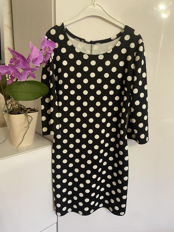 Базова сукня в горохи, гарно сідає по фігурі. Діє акція 1+1=3