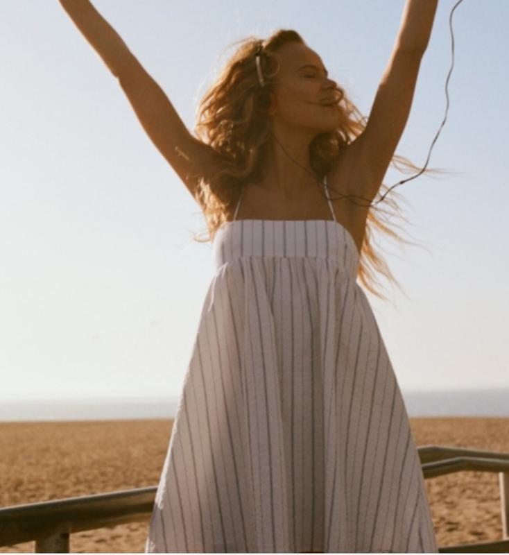 🌿ромпер в смужку на брителях від Zara ззаду на резинці, тканина 76% котон, 24% поліестр Розмір: XXL Заміри:ПО грудей 49 см, ПО бедер вільний, довжина 84 см