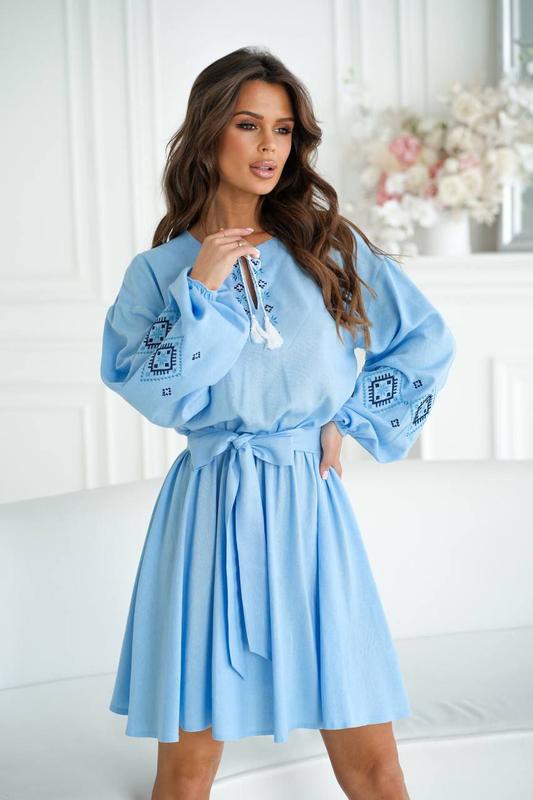 ✨НОВИНКА✨ Льняное платье с вышивкой и расклешенной юбкой. ▪️Талия на резинке и поясом красиво подчеркивающим талию. ▪️Горловина украшена кисточками. ▪️Рукава на резинке. 🌺Тканина: льон + вишивка 🌺Длина: 90 см 🌺Рукав: 50 см(спущенный рукав) 🌺Размера: S-M(42-44), L-XL(46-48) 🌺Цвета: черный, голубой, молочный 🌺Производство Украина 🇺🇦 Цена 1555грн🔥
