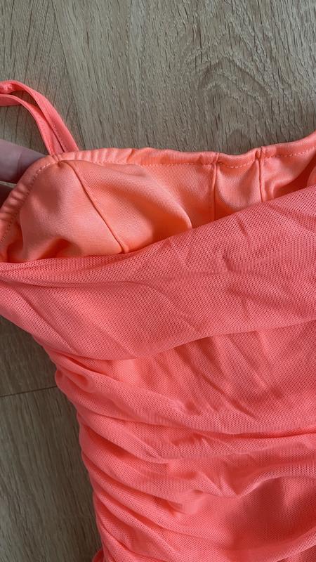 Фантастическое платье кораллового цвета, очень красиво сидит по фигуре. Размер хс. Могу сделать замеры Не светится,под сеткой ещё есть подкладка