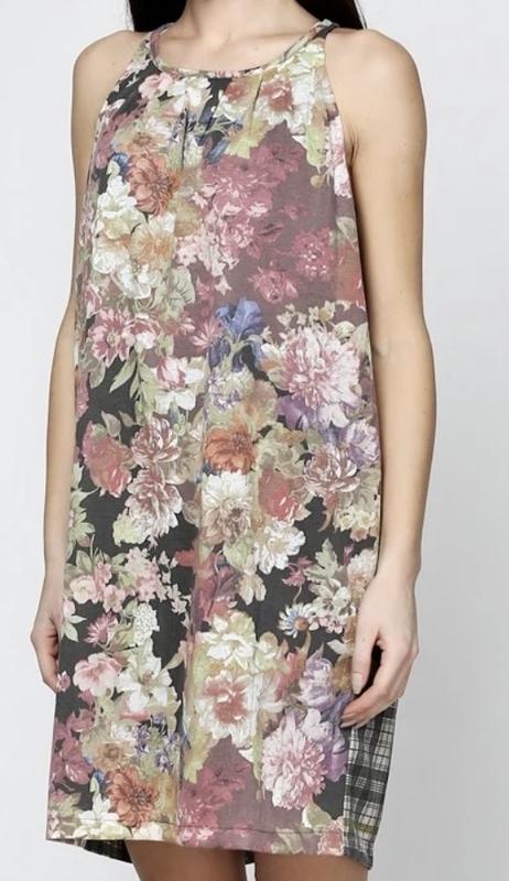 Сукня для прогулянок у літню пору. Принт сукні, перед із зображенням прекрасних квітів, спинка у клітинку. На підкладці, 100% поліестер. Розмір М-L. Без етикетки.