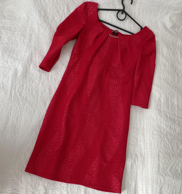 Сукня червона на спині молнія золотого кольору. Розмір 48, s По фігурі, підкреслює грудь, довжина вище колін Стан як новий
