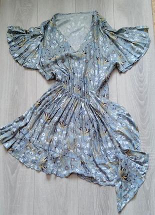 цветочное платье красивого голубого цвета состояние нового , бирка затерялась размер С/М ткань очень лёгкая. ,мягкая и приятная к телу воздушная есть резинка на талии ЗАМЕРЫ: Дина - 86 см Плечи - 37 см ПОГ - 42 см ПОТ - 38 см ПОБ - 43 см