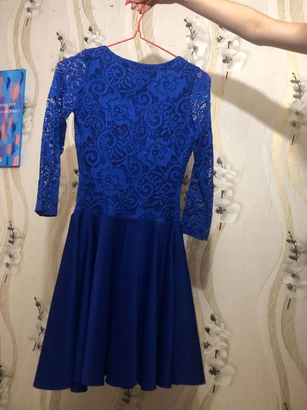 Сукня з мереживом (додатково стрічка, підкладка для пишності спідниці) Колір електрик