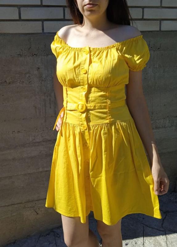Легка бавовняна сукня на гудзиках Стан нової Яскравий і насичений колір Розмір 2хс за бирці, підійде на ХС- С Заміри : пог - 42 см пот -36 см довжина - 77 см Одягнуто на зріст 160 см , 82/65/88