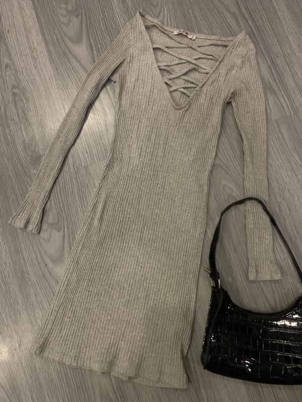 Платье рубчик s размер серое
