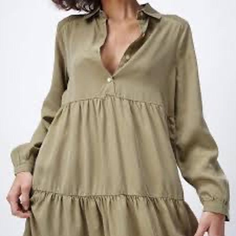 сукня з комірцем, від бренду Zara. 🌸 100% Ліоцелл. Стан чудовий. Ефектів та ознак носіння, немає. Колір оливковий. Матеріал щільний, не просвічує. Крій вільний. Розмір с, але на невелику м теж підійде 💙