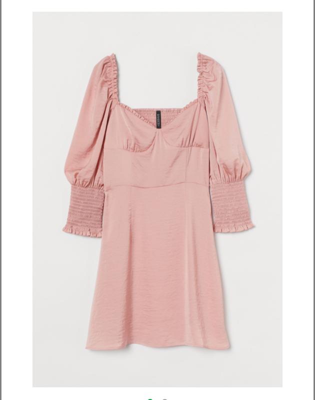 Легка сатинова сукня, підійде на розмір S-M. Невагома на тілі, з потайним замочком збоку. Ідеальна на літню погоду. З красивим декольте. Коротка сукня з м’якого атласу, що ніжно драпірується, з вирізом у формі «сердечка» та формованими чашками на підкладці. Ззаду — зборка дрібними буфами, пишні рукави три чверті на вузькій резинці з невеликою оборкою на плечах, а також обтислі манжети зі зборкою дрібними буфами й оборкою. Потайна блискавка з одного боку, відрізна по талії, трохи розкльошена спідниця. Без підкладки.