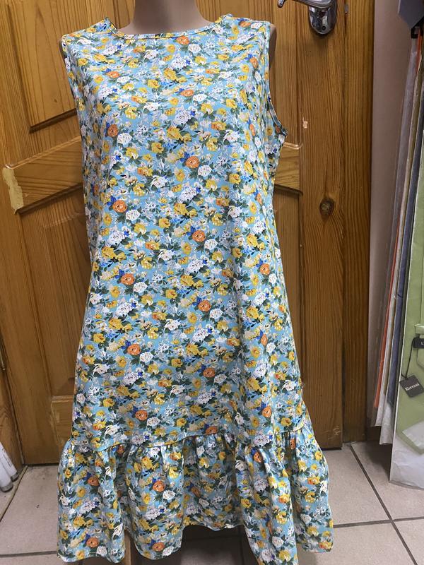 Сукня-сарафан жіночий мутного кольору в мілку квіточку,100%бавовни,ПОГ -53,ПОБ -64,довжина -90 см,є тоненький пасочок