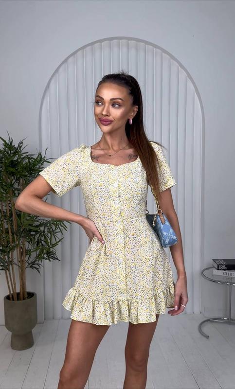 Ніжність у кожній деталі🥰 Сукня із невагомого софту у довжині міні, з ніжним квітковим принтом та романтичним рюшем💕 Мод.829 Колір: жовтий, блакитний, червоний, синій, білий Матеріал: софт Розмір: S/M, M/L 🔥Відмінна якість тканини та пошиття