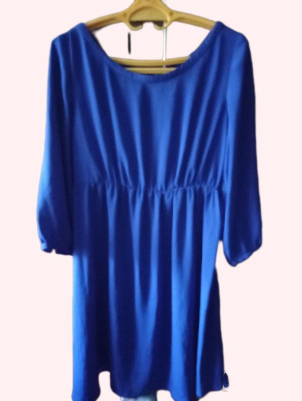 Літня дуже гарна сукня з рукавами до ліктя.Темно фіолетово-синього відтінку).(на фотографії відрізняється,напевно тканина переливається від спишки)Додасть святкового образу в повсякденному образі