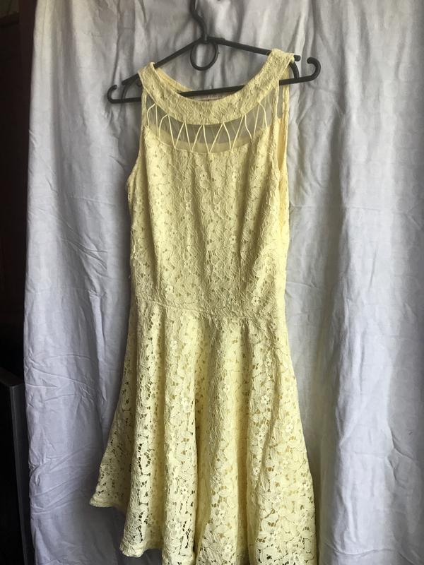 Жовта, гіпюрова, легенька сукня, є декілька непомітних затяжок
