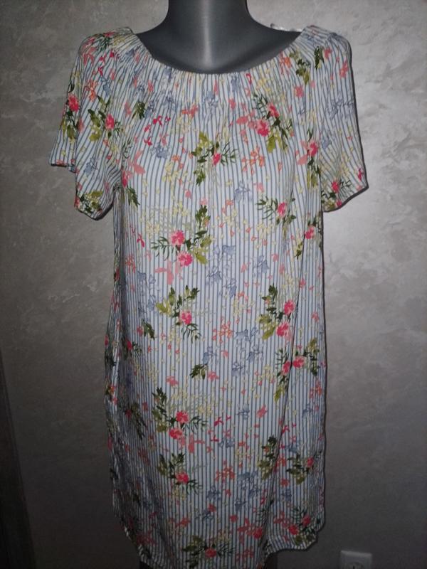 Дуже зручна модель,якісна тканина,гарний,ніжний принт! має два кармани,,розмір вказано 14