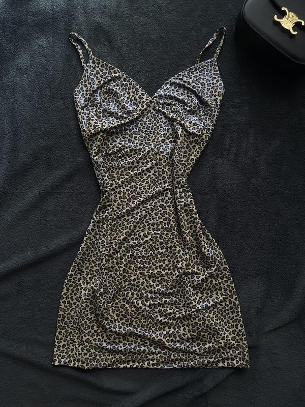шикарна леопарда сукня, тканина з переливом у синій колір😍😍позаду трішки гола спинка