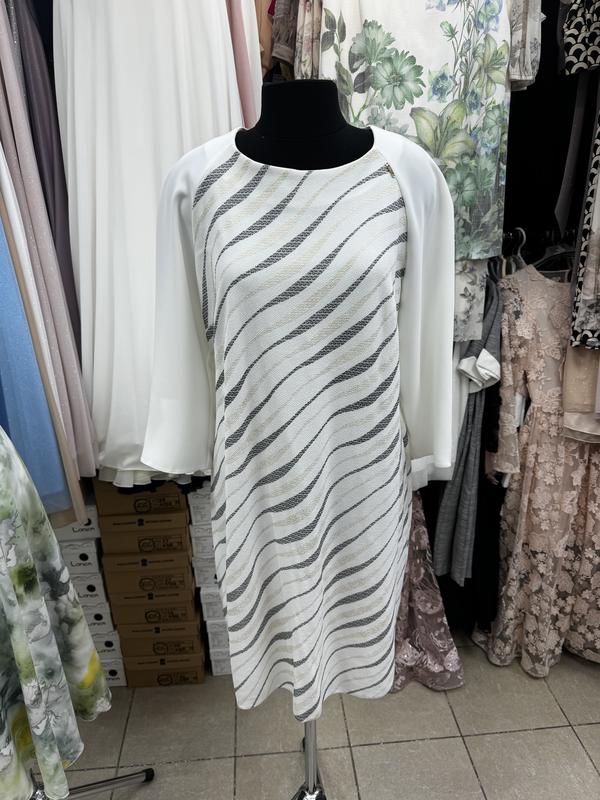 Ця ніжна сукня стане чудовим вибором для будь-якого випадку. Вона має шифонові рукава, які додають образу легкості та вишуканості. Принт на сукні чудово скриває недоліки фігури, забезпечуючи вам упевненість та комфорт. Турецький матеріал забезпечує надійність та довговічність.Ця сукня ідеально підходить для святкових подій, вечірок або повсякденного носіння. Розмір:52 Ціна: 800