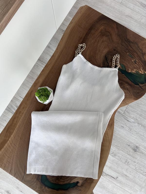 Стильное белое платье с золотистыми бретельками/цепочка Ткань тянется, в рубчик, приятная к телу Размер С Стан хороший