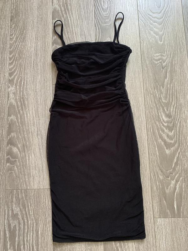 Платье черное в сеточку XS/S полностью садится по талии