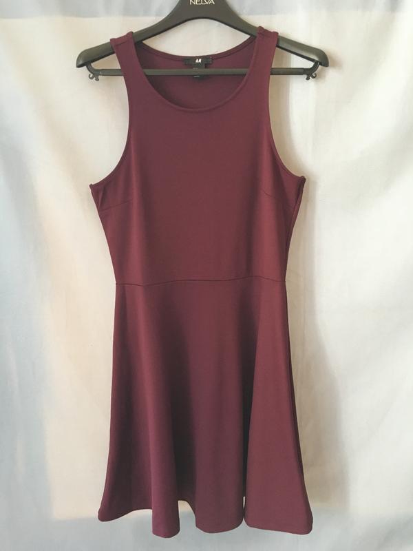 Бордова трикотажна сукня H&M, мінімалістична і дуже жіночна. Зверху як маєчка, відрізна талія, спідниця А-силуету. Можна носити як сарафан. Тканина еластична, тягнеться. Довжина по спинці - 93см ПОТ-47см ПОТ - 38см ПОБ - 50см