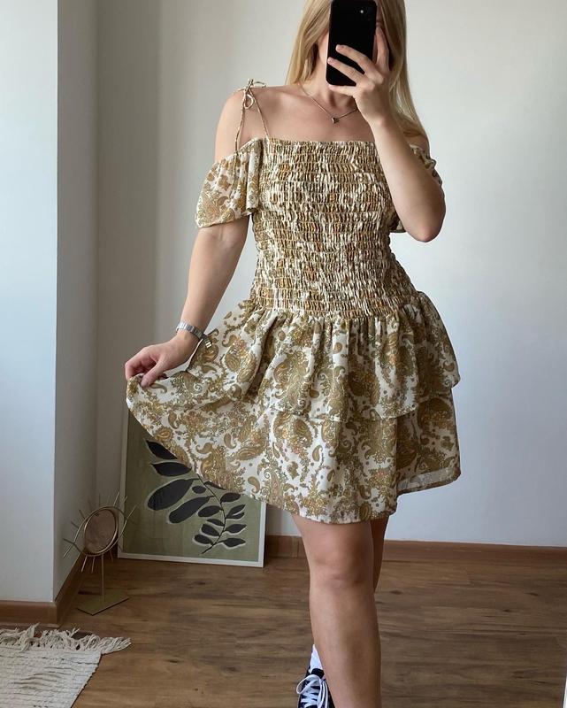Ярусна шифонова сукня ASOS Розмір 12/ повномірна М Пог 41, пояс 36, довжина 67 Спущені плечики Топ - резинка Є підкладка Стан ідеальний Поліестр