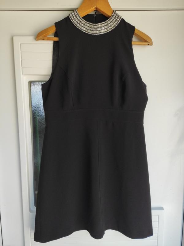 Романтична сукня А-силуету з коміром стієчкою із страз. Доволі тяжка головина і тканина також Підкладка атлас Пог-46 Пот-39 Поб-49-50 Довжина-86 Є запасні стрази. Стан нової речі