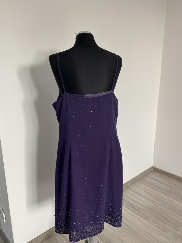 Плаття темного фіолетового кольору з ручною вишивкою бісером, модель напівприталена, на бретельках.