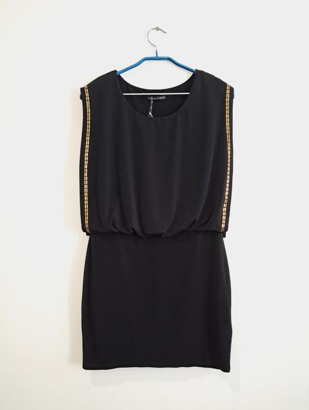 Платье от торговой марки Definitions. Ткань мягкая, тянется. (3103) Размер: 12 (подойдет и на 10) Полуохват груди: 46,5 см, тянется до 63 см Полуобхват талии: 39 см, тянется до 54 см Полуобхват бедер: 45,5 см, тянется до 63 см Длина от плеча до талии: 43 см Длина изделия: 82 см Состав: 95% полиэстер, 5% эластан