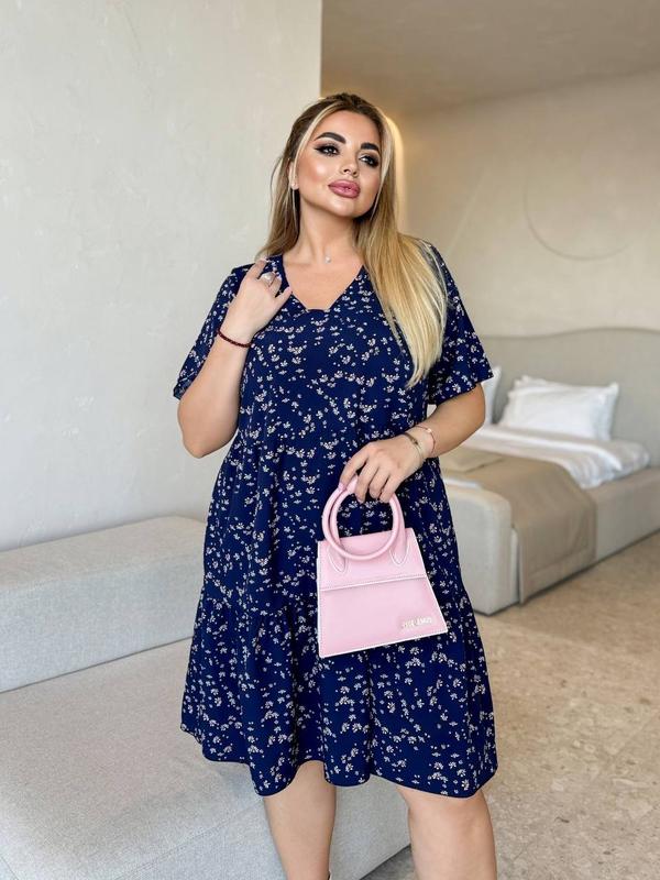 Сукня Модель: 060 Тканина: софт,принт квіти Кольори: синій, рожевий та сірий Розмір :48-50,52-54,56-58, 60-62 Довжина сукні :101см Заміри по виробу: 48-50 ОГ 112см, ОС 125см 52-54 ОГ 118см, ОС 135см 56-58 ОГ 128см, ОС 145см 60-62 ОГ 138см, ОС 160см рин5221 690.00 грн