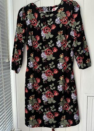 Вишукана вечірня сукня-міні з квітковим прінтом. Має застібку-блискавка на спині та пояс, з підкладкою. Рукав 3/4. Розмір 46.