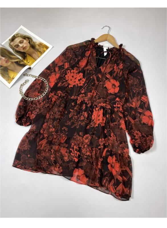 Ніжна сукня в квітковий принт, H&M Є підкладка Довжина 83см; НОГ 45см; НОТ 49см; НОС 75см; Довжина рукава від шиї 65см.