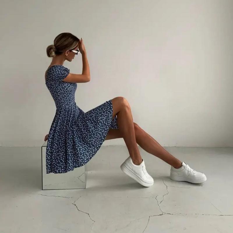 Легка стильна сукня з дрібним квітковим принтом. Сукня з короткими рукавами на резинці, з квадратним вирізом горловини. Спідничка вільного крою. Приємний до тіла матеріал та якісний пошив. Стильна та зручна сукня для повсякденного носіння та для особливих подій. Відмінно підійде для носіння на літо. Розміри : S, M