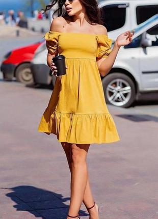 Жіноче плаття зі стрейч-котону на розмір М , 42 розмір, але краще дивиться параметри на останьому фото. Ніжно- гірчичного кольору. Залишила собі та доньці , бо воно дуже гарно сидить по фігурі , легке та комфотне.