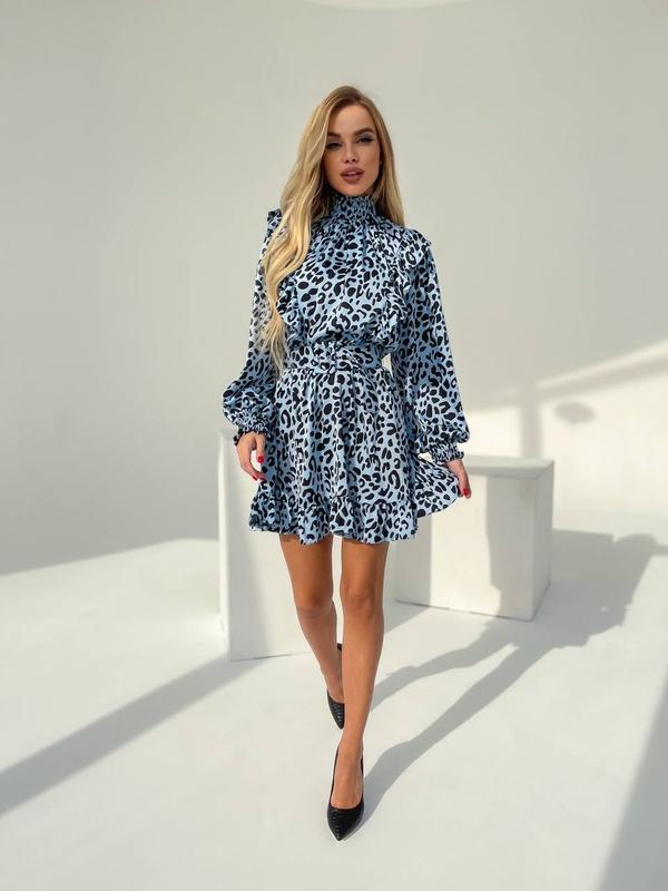 Фото реал Сукня Модель 001 Розмір-42-44,46-48 Тканина-шовк Армані,преміум Колір-Лео принт,блакитний Ціна-910грн Пояс в комплекті,повністю обтягнений тканиною основи Довжина виробу 83 см Довжина рукава 62 см