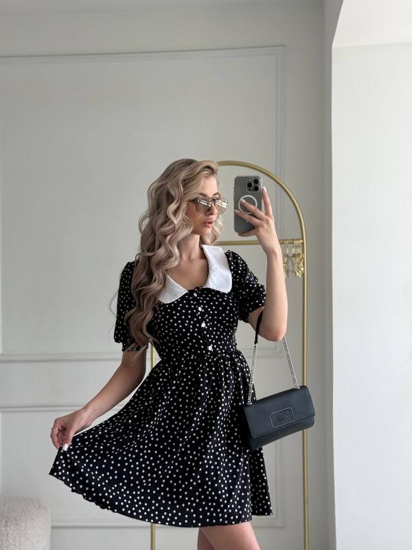 Ціну знижено😍 Літня сукня арт. ajur. 416 Тканина: горох - софт, квіти - штапель Розміри: 42-44, 44-46 Кольори: чорний в горох, чорний в білу квітку, беж в білу квітку Жіноча літня сукня з легкої натуральної тканини, прекрасно підійде на урочисту подію або кожен день. Спереду застібається на ґудзики, а ззаду завʼязується поясом.сук