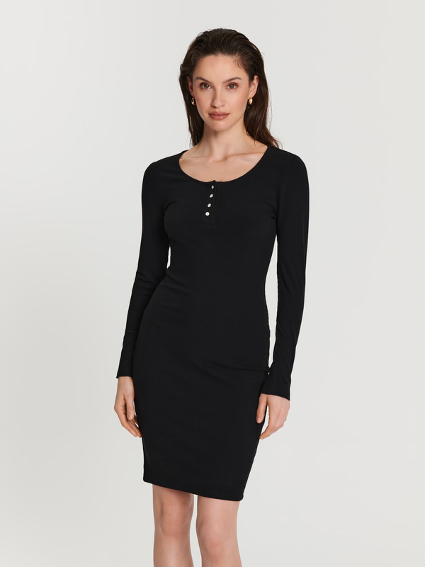 ДОВЖИНА: міні ВИРІЗ: обтислі ВІЗЕРУНОК: трикотаж у рубчик ДЕТАЛІ: довгі рукавизастібка на кнопки ТКАНИНА: віскозаеластан ТИП: сукня Категорії: Жінка На моделі розмір S/36. Зріст моделі: 174 cm довжина міні обтислий фасон кругла горловина довгі рукави застібка на ґудзики тканина в рубчик