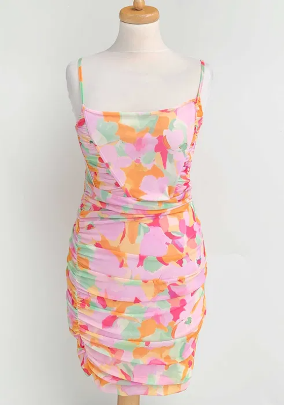 Міні сукня по фігурі на бретельках. Верх сіточка, всередині є підкладка. Не просвічує. Бретельки регулюються. Розмір вказано 38, але рекомендую на 34-36. Рекомендую на зріст 165-170. Заміри: напівобхват грудей - 36 см (тягнеться до 44 см) напівобхват талії - 31 см (тягнеться до 38 см напівобхват стегон - 38 см (тягнеться до 46 см) довжина посередині від декольте - 66 см Склад: 95% поліестер, 5% еластан