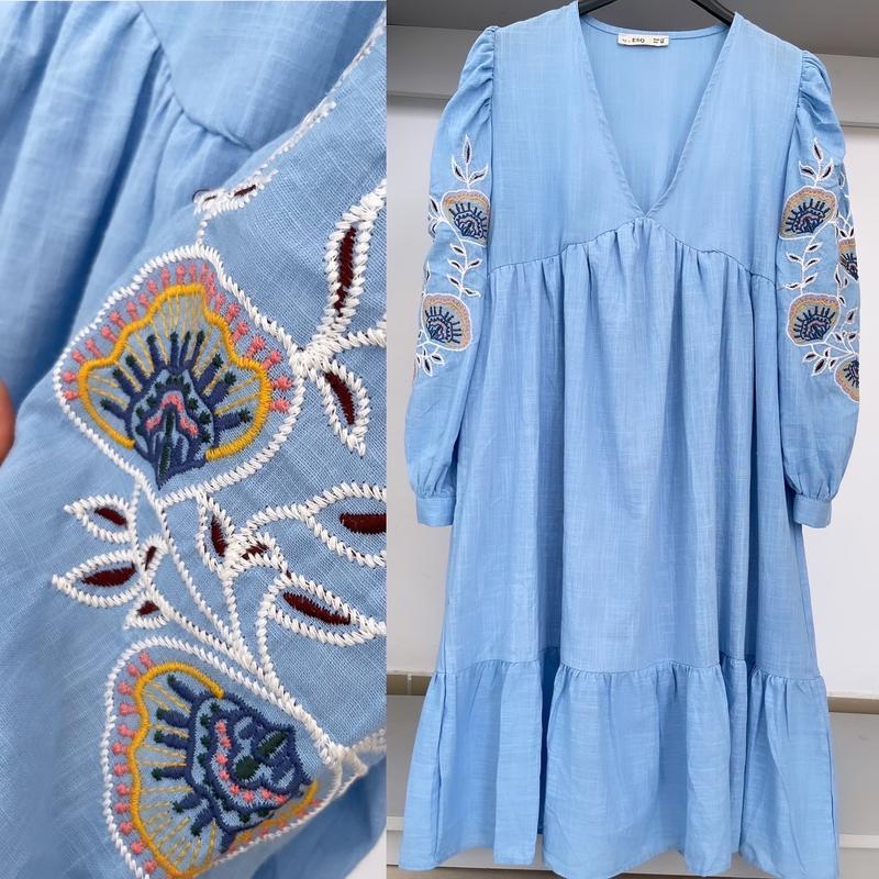 Красиві вишиті сукні вільного крою🩵 Тканина Cotton, колір блакитний🩵 Розміри С, М, Л С: пог 45, довжина 94 М: пог 47, довжина 95 Л: пог 49, довжина 96см. Ціна зі знижкою 850грн🔥🔥🔥 коштували дорого