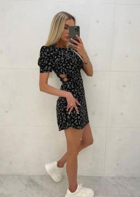 розмір 42-44 ог 85-92 от 68-72( в талії ще регулюється за рахунок відкритих ділянок і зав'язок ) ос 90-96 Тканина: Софт принт Довжина самої сукні - 81 см P.s. стан дійсно новий, з біркою. Брала собі, але фасон і розмір не підійшов (