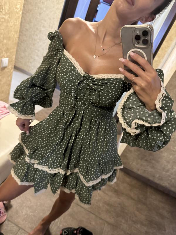 Сукня розмір S довжина 80 обʼєм грудей 90 талія пів обхват 33 бедра вільно . Нова ,виглядає дуже класно!