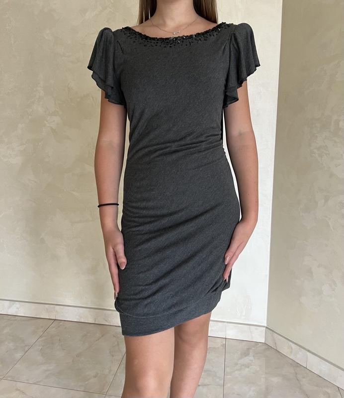 Сукня в гарному стані, італійський бренд, оригінал,100% модал, прикрашена бісером на вороті, з відкритою спиною, розмір 1, XS/S, ПОГ42, довжина 86