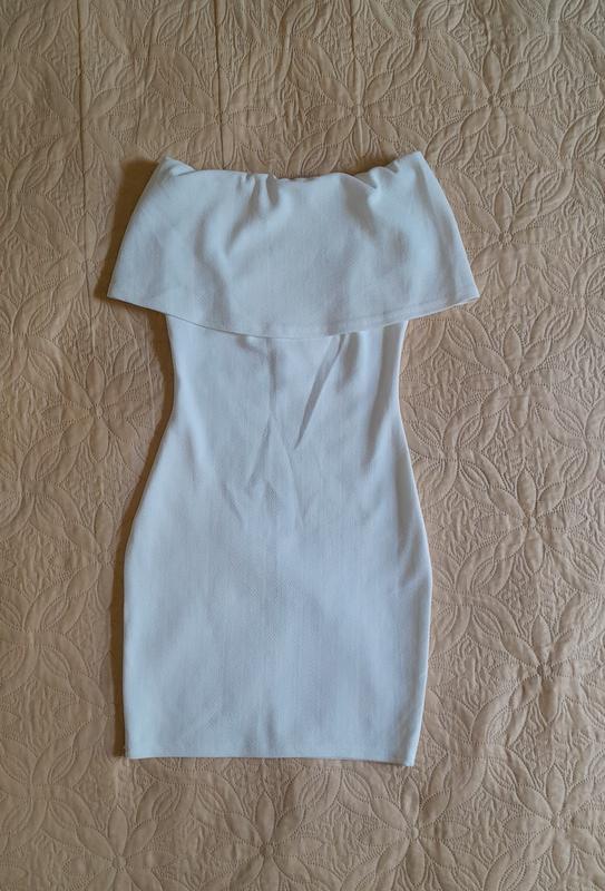 Біла трикотажна сукня з відкритими плечима гарної якості, тканина м'яка, в міру щільна, приємна до тіла, красиво сідає по фігурі, стан нової, розмір 42-46