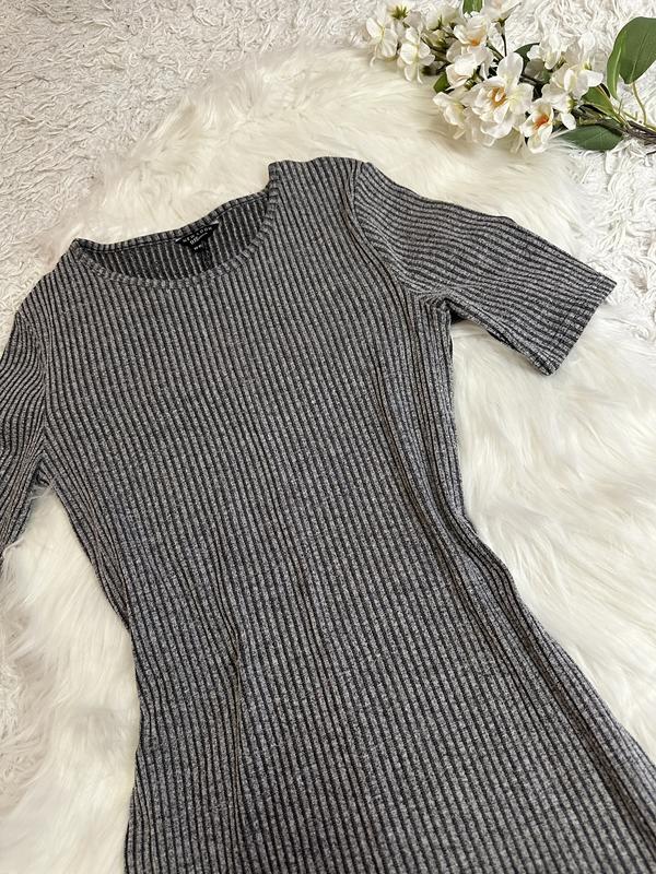 Сіра сукня по фігурі в рубчик. Взагалі вказано що це дитяча, але гарно сідає до М розміру