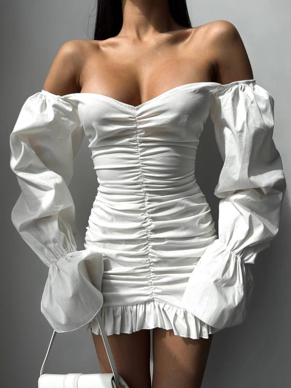 Сукня (плаття) жіноча коротка міні з довгим рукавом коттон 42-46 біла