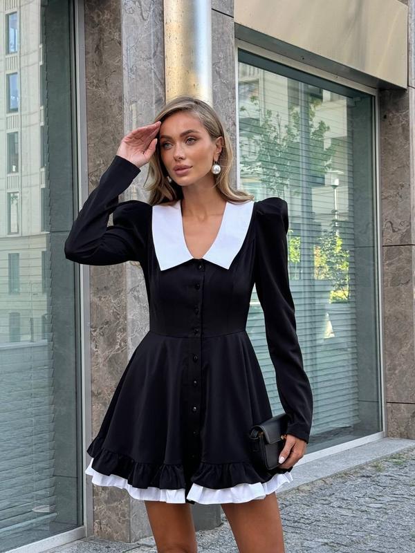 Сукня ▫️ Матеріал: шовковиста костюмна тканина Chicago ▫️ Колір: чорний ▫️ Розміри: S, M ▫️ Довжина виробу: 80 см ▫️ Довжина рукава: 65 см ▫️ Параметри моделі: 82-63-94 ▫️ Зріст моделі: 170 см ▫️ На моделі розмір: S Ціна: 1799 грн