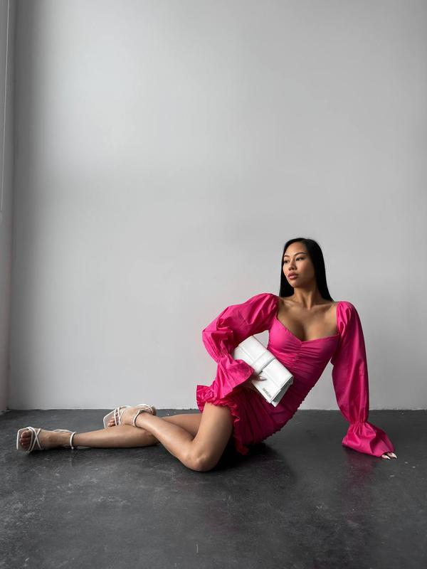 Новые реал фото 🫶🏻 💎Наш бесспорный хит продажа 💎 Сукня ▫️Мод cb 1083 ▫️Ткань - турецкий коттон ▫️Размеры - 42-44 и 44-46 ▫️Цвета - черный, малина и белый 🔝 Если нужен Wow эффект - это платье точно для вас, идеально моделирующее фигуру за счет сборок, подчеркивающее грудь и талию, объемные рукавчики, которые можно надевать на плече, или носить спущенными🥰 Супер качество и посадка ❣️