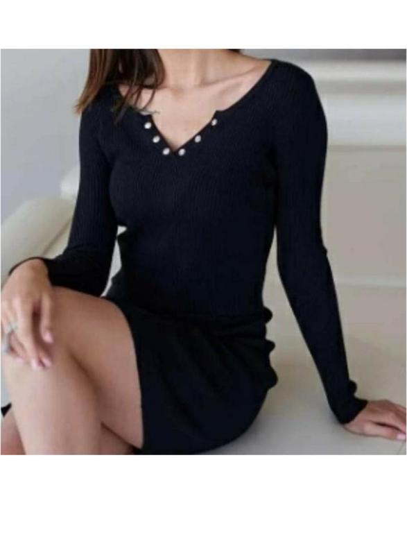 Платье черное мини в рубчик