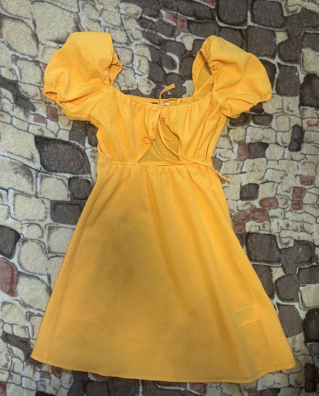Помаранчева сукня,легенька,з вирізом на груді(утягується),з боку є маленька блискавка ,розмір XS