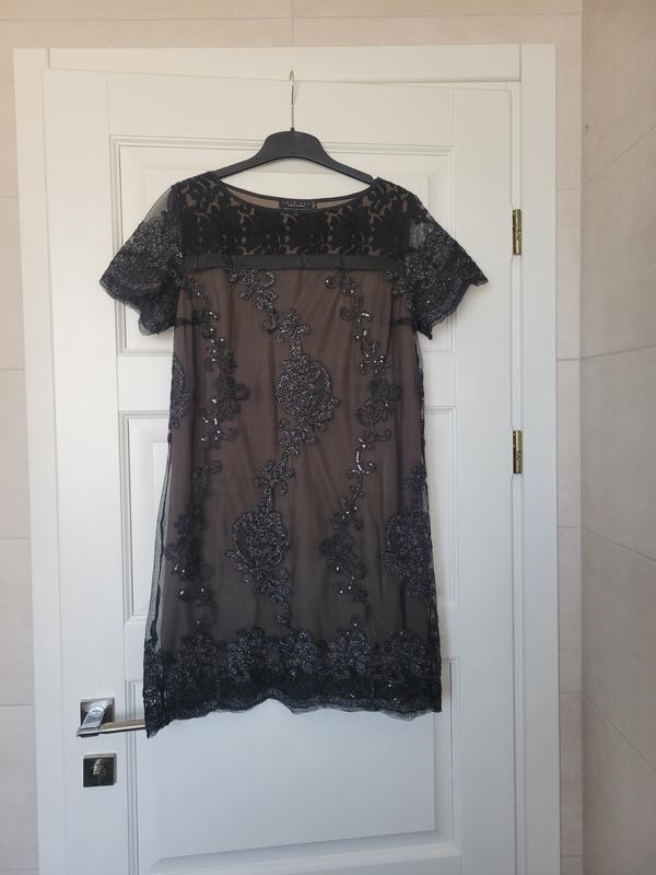TWIN-SET Платье вечернее р. M вышивка пайетки Замеры: Плечи 41см, ПОГ 49см, линия талии отсутствует, ширина по низу 61см, длина от плеча 92см.