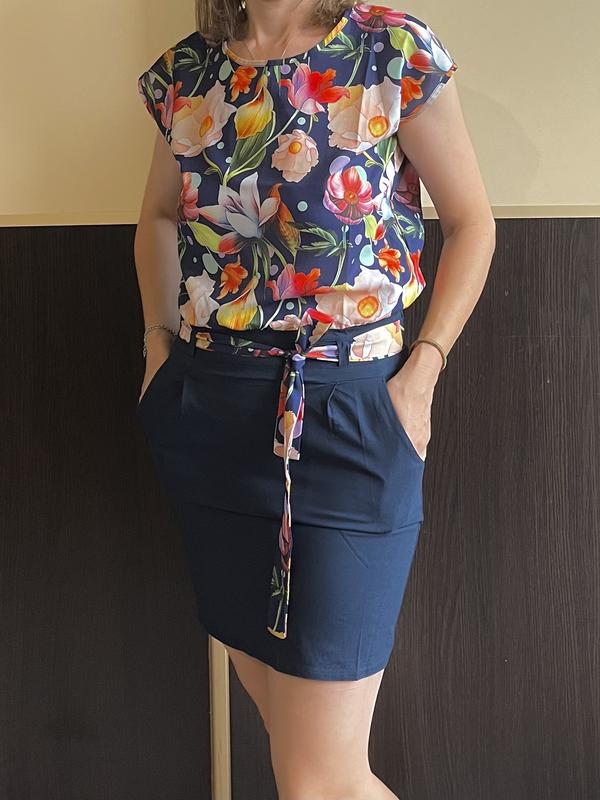 Дуже гарна сукня Верх як блуза тканина шифон, не світиться Низ спідничка тканина костюмка, тягнеться Одягнуто на параметри 89-70-95 Стан ідеальний