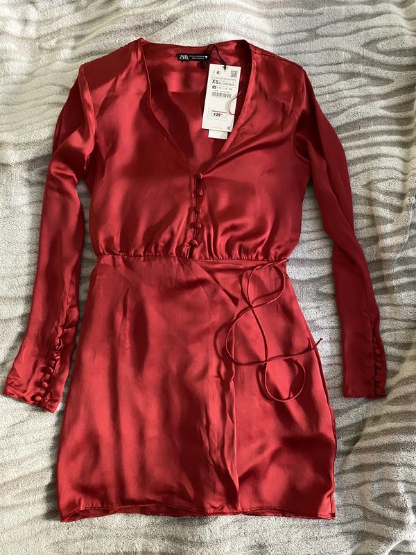 Сукня Zara, нова, не підійшла по розміру, ефект сатину, коротка, спереду на запах. Рукави та перед на ґудзиках, не імітація)