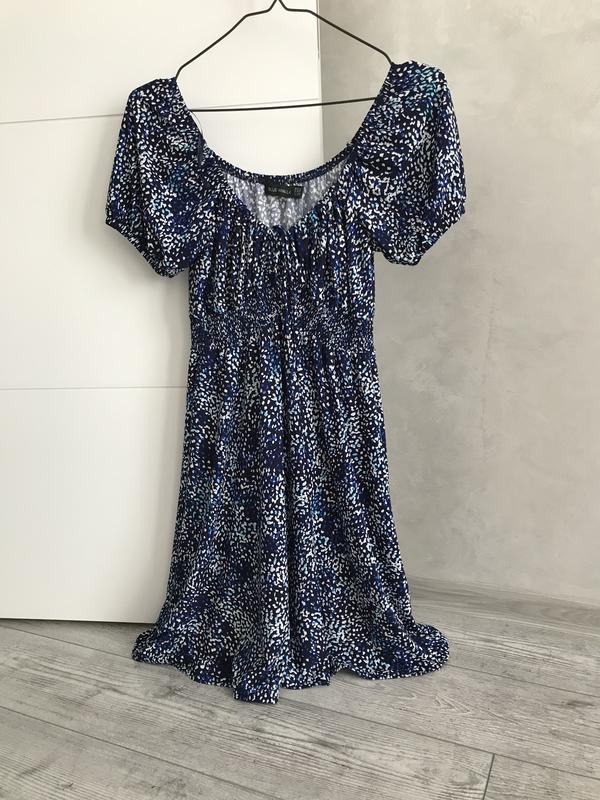 Зверху легка резинка, можна по різному одягнутиГарне декольте на талії легка резинка Загал довж 85см